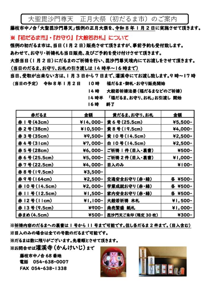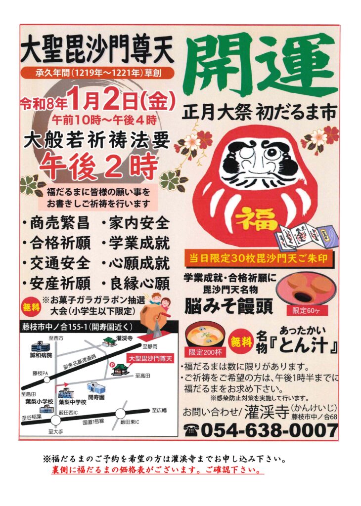 ※福だるまは数に限りがあります。ご予約をご希望の方は灌溪寺までお申し込みください。